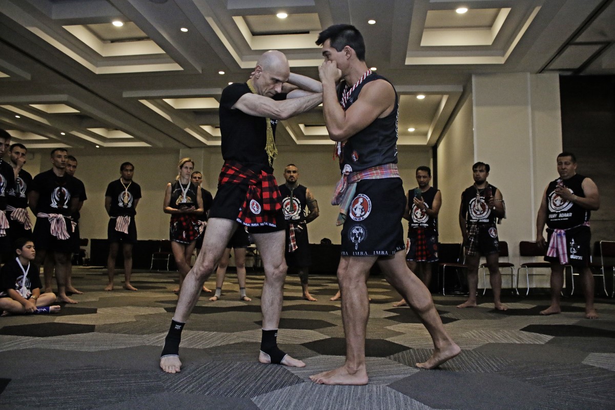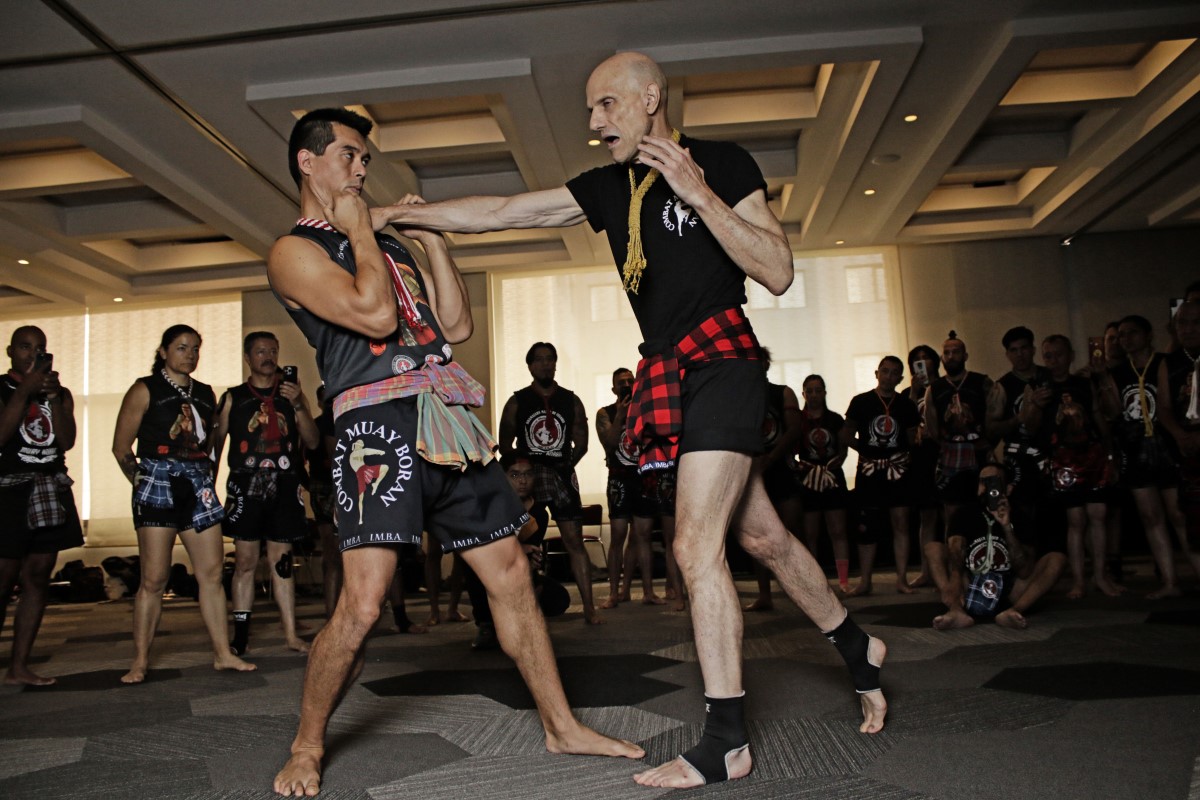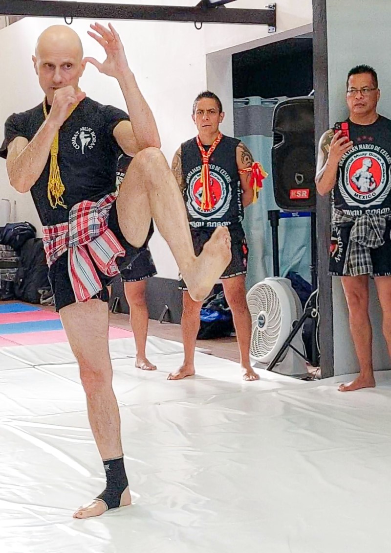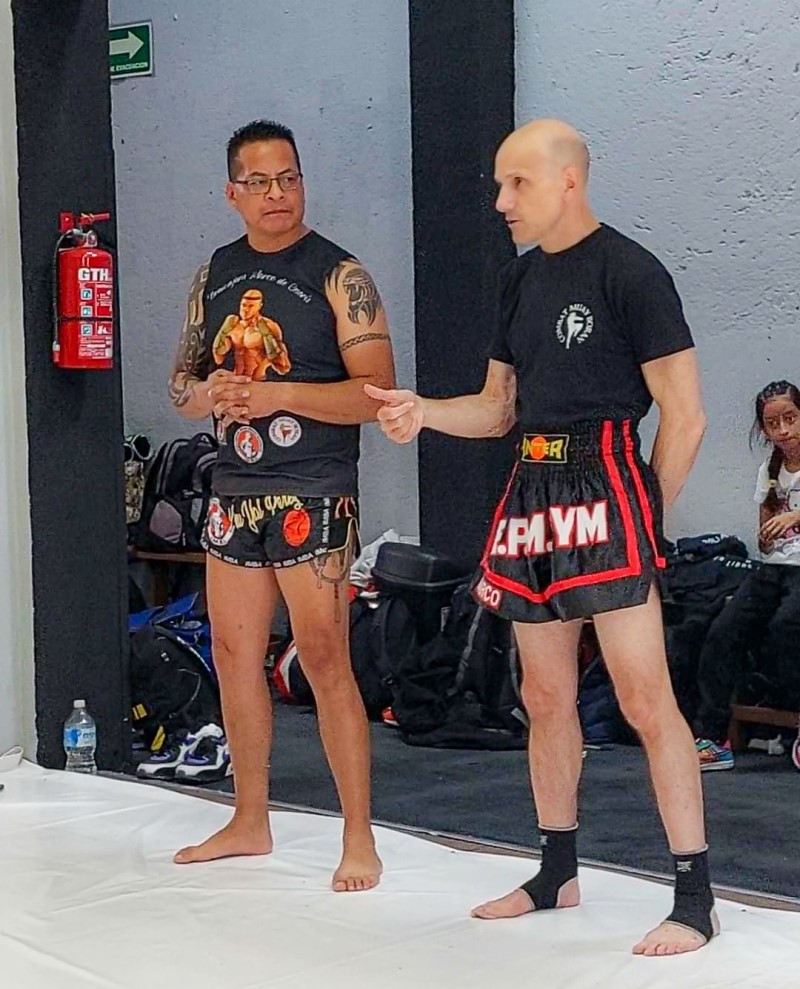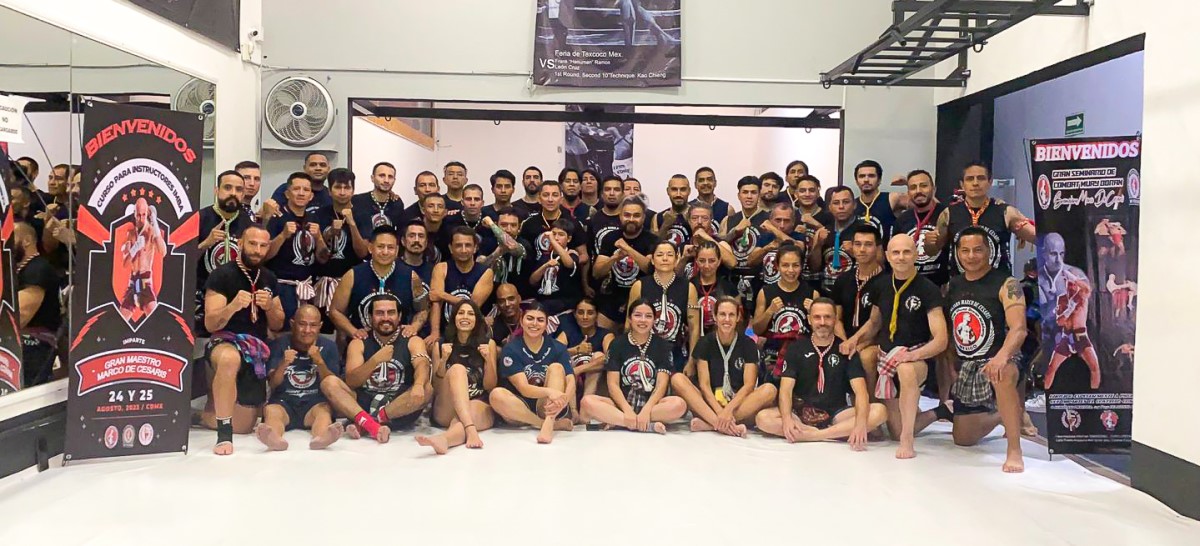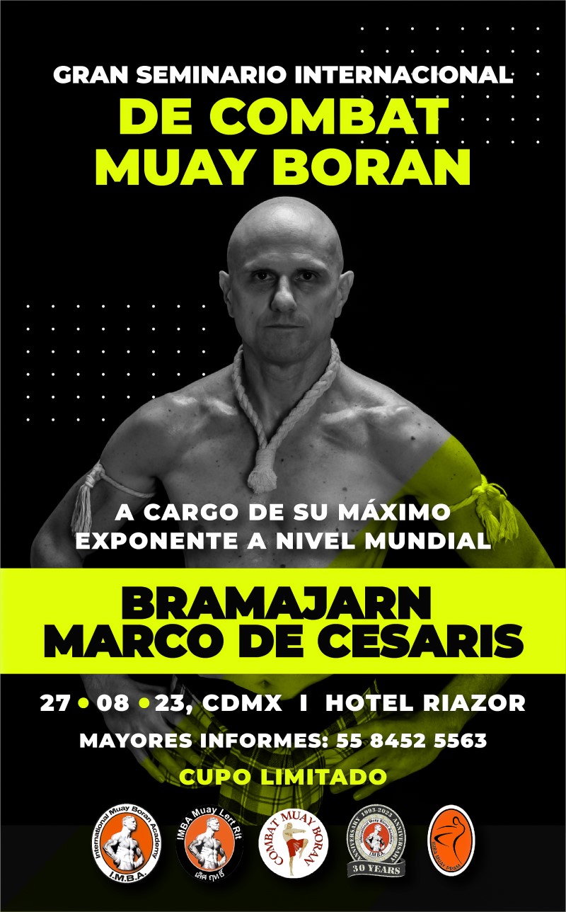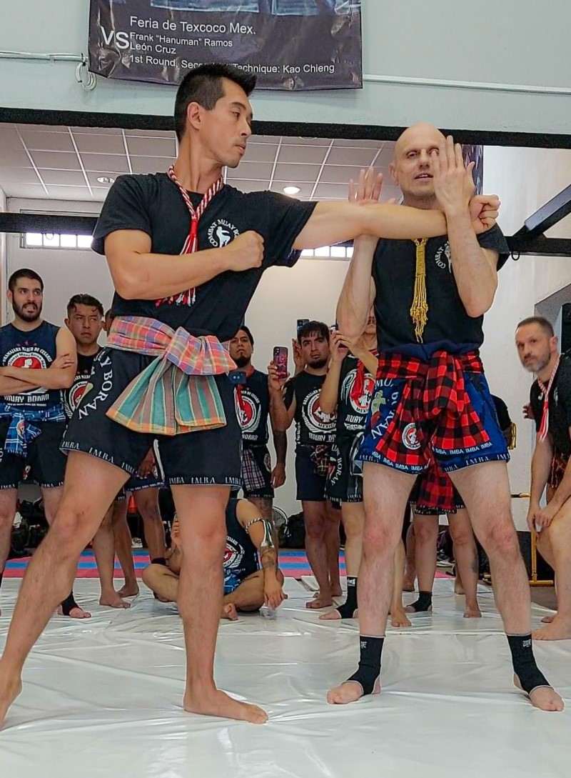 Marco De Cesaris (IMBA, máximo exponente del Muay Boran) llegó a CDMX en agosto 2023 al Gran Seminario Internacional de Combat Muay Boran. Lotus Hanuman fue uno de los anfitriones junto con Hotel Riazor. En la primera foto se aprecia el banner conmemorativo de la pelea Frank "Hanuman" Ramos vs León Cruz (Feria de Texcoco, KO 1° round con Kao Chieng) colgado dentro del gimnasio.